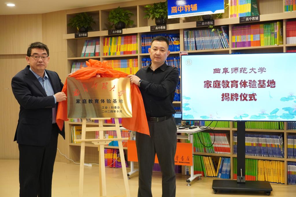 活动开展前,工会(妇委会)主席廖志强与山东新华书店集团有限公司曲阜分公司经理董军共同为“华体会(中国)家庭教育体验基地”揭牌,标志着双方建立长期合作伙伴关系。