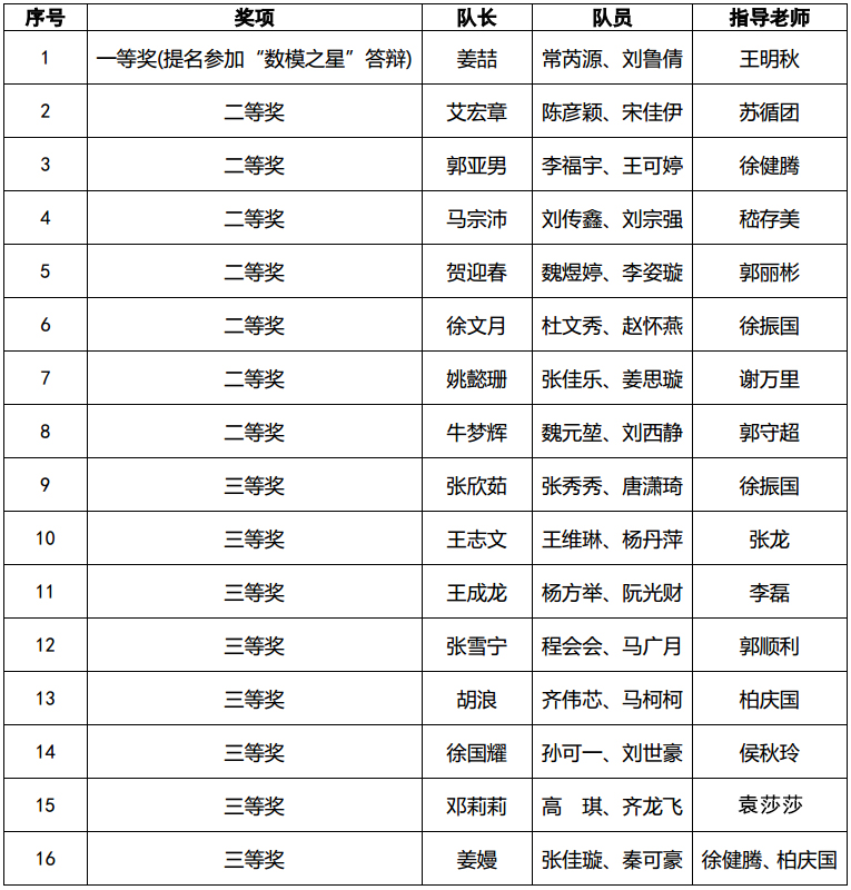 研究生处讯 近日,“华为杯”第二十一届中国研究生数学建模竞赛成绩揭晓,华体会(中国)研究生在比赛中再创佳绩,荣获全国一等奖1项(提名参加“数模之星”答辩)、二等奖7项、三等奖8项。与去年相比,获奖数量增长6项,提高幅度高达 60%,获奖质量和获奖数量均取得历史性突破。其中,由王明秋老师指导的研究生姜喆、常芮源、刘鲁倩团队获得“数模之星”答辩提名,获此殊荣的队伍全国只有13个(占比为0.06%)。
