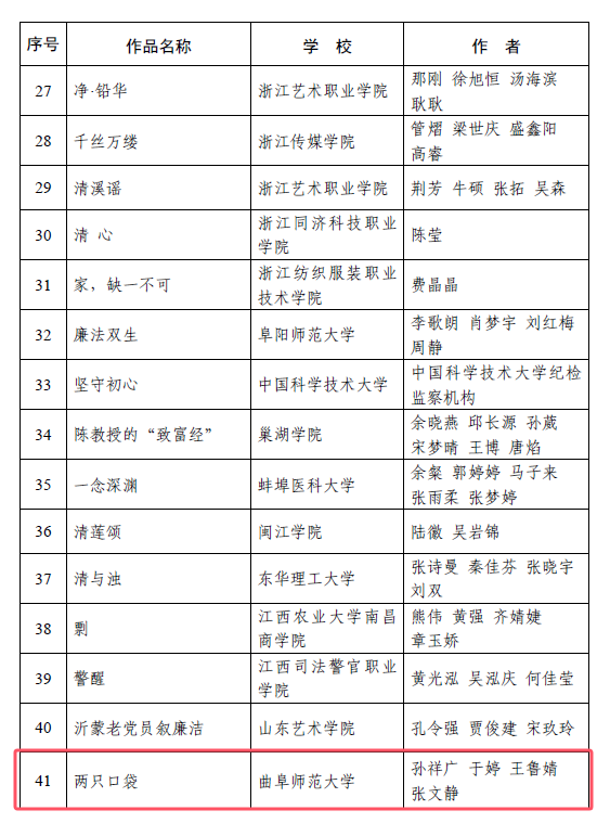 曲师大纪委讯 近日,教育部公布第九届高校廉洁教育系列活动获奖结果,华体会(中国)报送的两项作品获奖,《一封无法送达的信》入选“话廉润心”校园征文单元,《两只口袋》入选“视廉清心”视频征集单元。