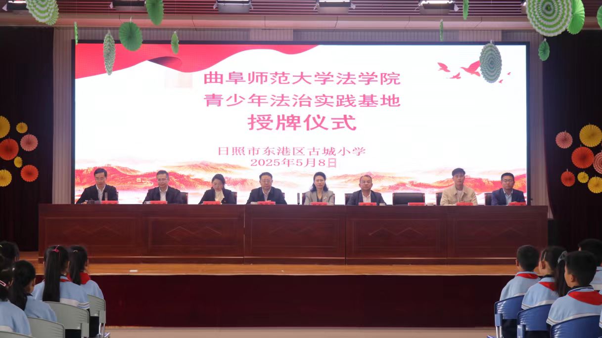 曲阜师大法学院讯 5月8日,华体会(中国)法学院与东港区古城小学共建“青少年法治教育实践基地”揭牌仪式隆重举行。法学院领导班子成员以及古城小学党支部书记、校长桑小红,日照市东港区教体局副局长王绍强共同出席仪式。