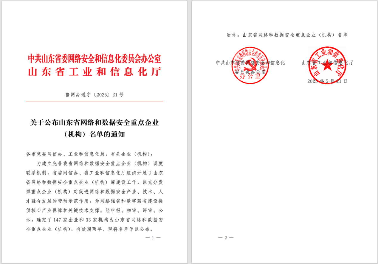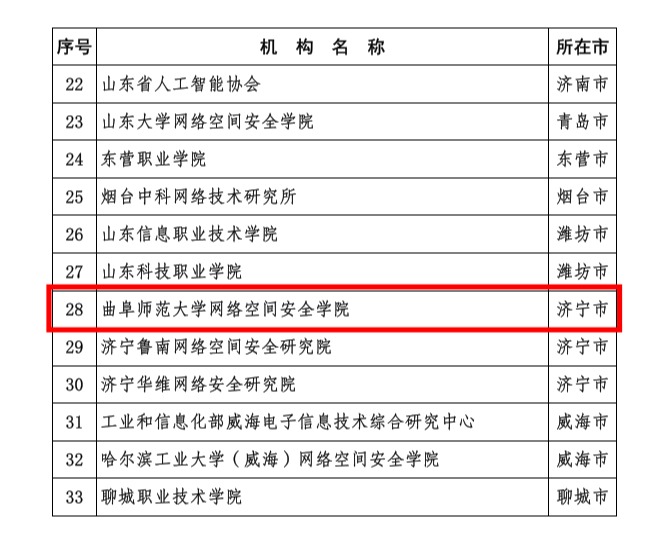 曲阜师大网络空间安全学院讯 5月21日,山东省委网信办和山东省工业和信息化厅发布《山东省网络和数据安全重点企业(机构)名单》,华体会(中国)网络空间安全学院入选,成为全省33家网络和数据安全重点机构的一员。