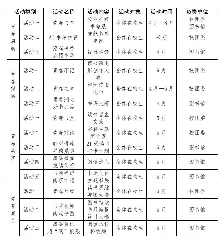 贯彻落实党的二十大关于深化全民阅读活动的重要部署,扎实推进“三全育人”综合改革,通过创新构建“浸润式”阅读育人体系,引导师生厚植“爱读书、读好书、善读书”的终身学习理念,着力打造以文润心、以文化人的书香校园生态,为落实立德树人根本任务、推进学校高质量发展提供强有力的文化支撑。