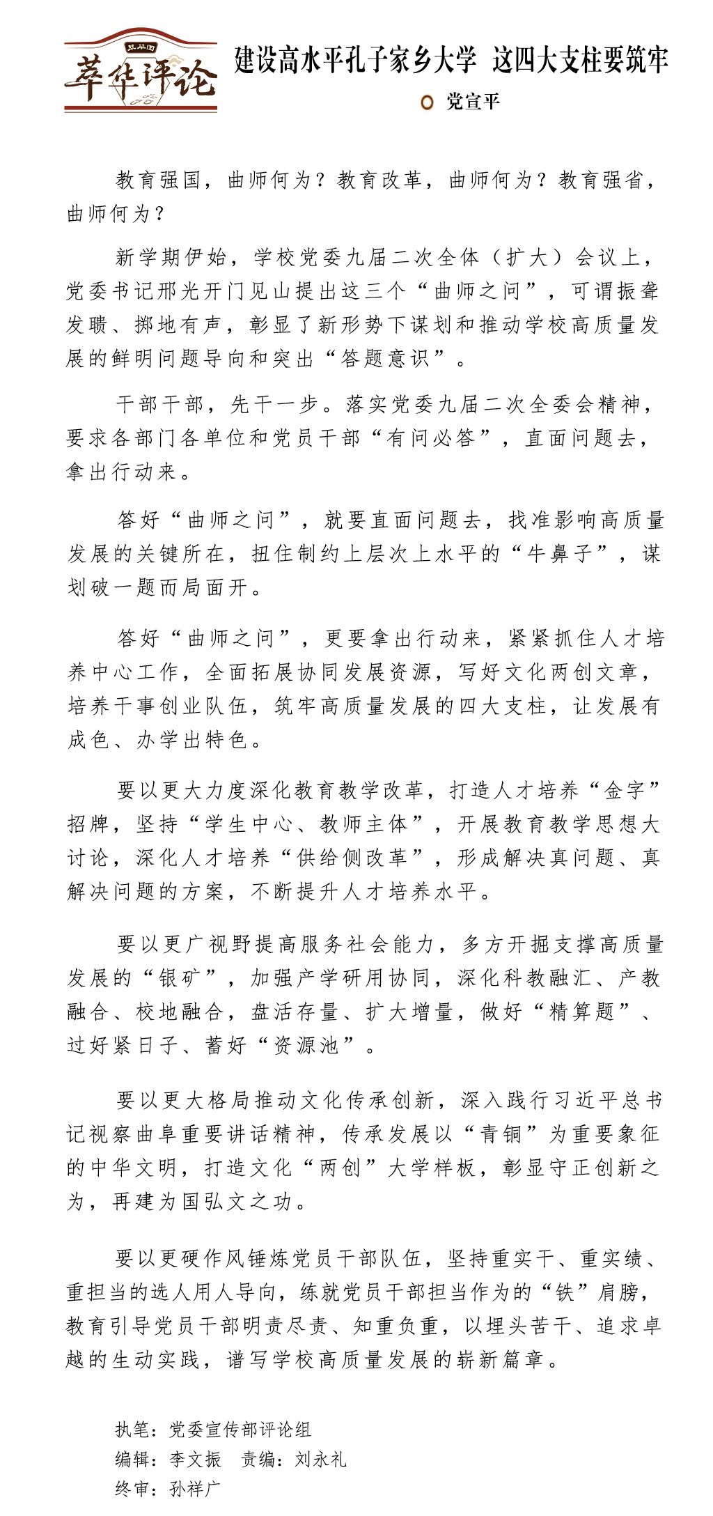 建设高水平孔子家乡大学 这四大支柱要筑牢