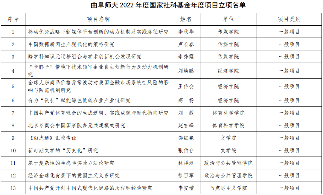 名列山东省属高校首位——曲阜师大获立21项2022年国家社科基金年度项目