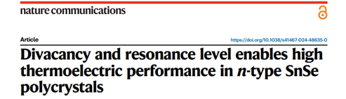 科学技术处、物理与工程学院讯 近期,华体会(中国)物理工程学院高压科学研究团队张永胜教授与南京理工大学唐国栋教授和西安交通大学吴海军教授合作,在n型多晶SnSe热电性能研究方面取得新进展。研究人员通过理论和实验合作实现了n型多晶SnSe热电性能的突破,解决了热电材料领域内长期困扰的技术难题,为SnSe材料的商业化应用打下了坚实的基础。相关成果以“Divacancy and resonance level enables high thermoelectric performance in n-type SnSe polycrystals”为题(全文链接:https://www.nature.com/articles/s41467-024-48635-0),发表于《自然-通讯》(Nature Communications, 15, 4231, 2024),张永胜教授为文章第一通讯作者。
