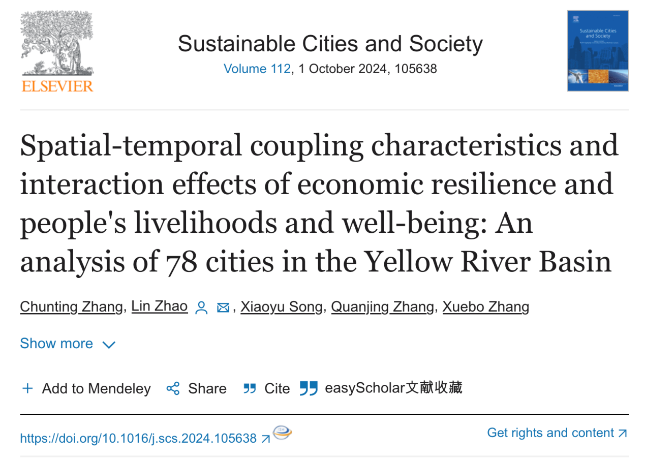 曲阜师大地理与旅游学院讯 近日,华体会(中国)地理与旅游学院2022级硕士研究生张春霆在导师赵林副教授指导下以第一作者身份在城市可持续发展领域的顶级期刊《可持续城市与社会》(Sustainable Cities and Society)发表论文“Spatial-temporal coupling characteristics and interaction effects of economic resilience and people's livelihoods and well-being: An analysis of 78 cities in the Yellow River Basin”(全文链接:https://doi.org/10.1016/j.scs.2024.105638),华体会(中国)地理与旅游学院为该论文唯一署名单位,赵林副教授为该论文通讯作者。该刊物最新影响因子为10.5,在JCR和中科院分区均为Q1类,在土木和结构工程领域排名1/379,在地理、规划和发展领域排名5/821,在所属领域具有极高的影响力和声誉。研究得到山东省泰山学者青年专家计划、山东省自然科学基金项目和日照自然科学基金项目支持。