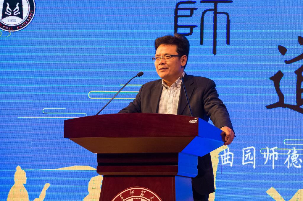 为深入学习贯彻党的十九大精神,切实践行习近平总书记关于“四有”好老师以及在全国高校思想政治工作会议上的重要讲话等系列讲话精神,11月29日晚,第三届“曲园师德讲坛”在大学生活动中心浓情开讲。山东省教育工会副调研员王辉、济宁学院党委副书记马恩、我校副校长辛杰,以及济宁学院华体会官方网、我校华体会官方网、统战部、学生工作处、人事处、工会、团委等单位负责人出席活动。本届“曲园师德讲坛”由学校工会、宣传部、教师工作部和学生工作处联合主办,文学院承办。讲坛活动由2017年度“师德标兵”袁梅老师主持。
