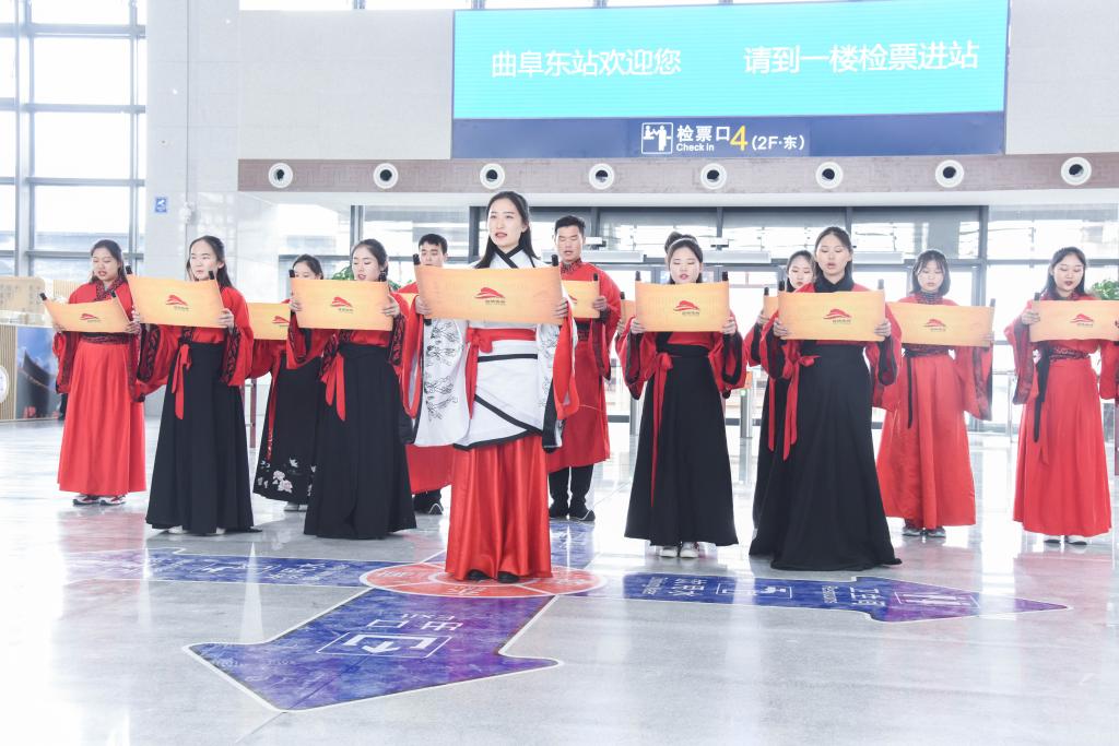 我校学子展演曲阜东站,传统文化乘高铁播撒四方
