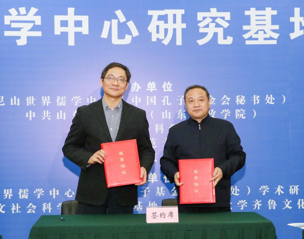 曲阜师大新闻中心讯 日前,尼山世界儒学中心研究基地揭牌仪式在济南举行,曲阜师大作为4所山东院校之一入选首批研究基地,曲阜师大党委书记戚万学在仪式上共同为研究基地揭牌并致辞,曲阜师大党委常委、副校长夏云杰代表学校签署了研究基地建设合作协议。