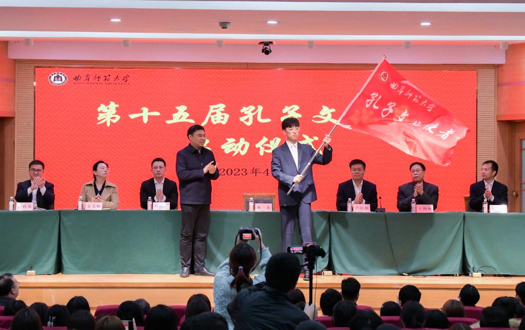 邢光在仪式上讲话,并为孔子文化使者授旗。邢光充分肯定了“孔子文化月”系列活动对弘扬优秀传统文化和建设校园文化品牌的重要意义。他强调,要在总结往届经验的基础上与时俱进、推陈出新,让活动内涵更丰富,形式更灵活,增强同学们的文化自觉、文化自信;要充分利用新媒体、新技术,提升“孔子文化月”的品牌影响力,提升校园文化建设水平。