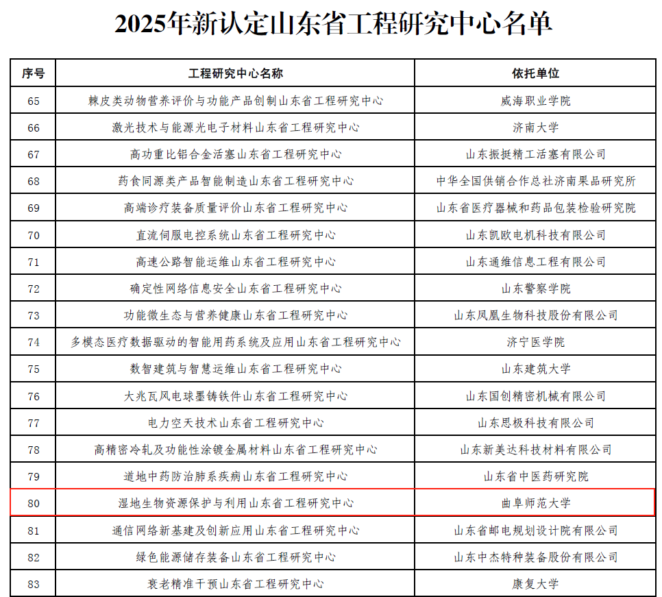 生命科学学院讯 近日,山东省发展和改革委员会发布《关于公布2025年新认定及全部山东省工程研究中心名单的通知》(鲁发改高技〔2025〕575号),依托华体会(中国)生命科学学院建设的“湿地生物资源保护与利用山东省工程研究中心”成功获批。该中心是学校2025年度唯一获批的省级工程研究中心,也是生命科学学院在省级科研平台建设的又一重大突破。