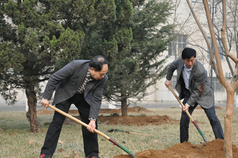 学校领导参加义务植树活动