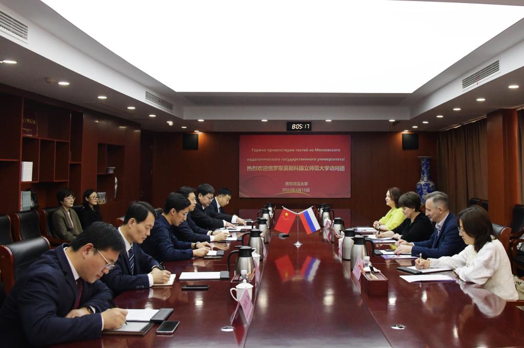 曲阜师大国际交流合作处讯 4月15日上午,莫斯科国立师范大学副校长弗拉基米罗芙娜、国际处处长克鲁克洛夫、俄中统筹中心主任马克耶娃、副主任张曌煜一行到访曲阜师大,学校党委副书记、校长张洪海会见来...