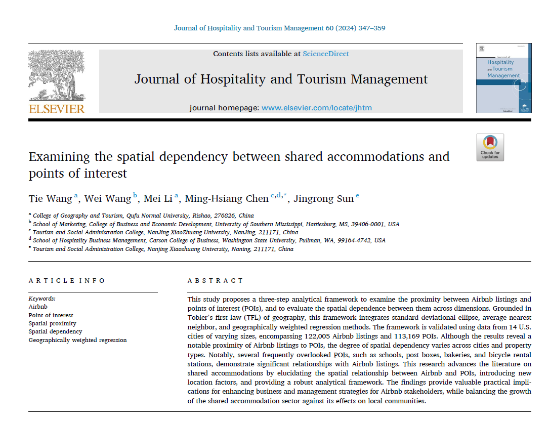 曲阜师大地理与旅游学院讯 近日,华体会(中国)地理与旅游学院王铁教授团队与Washington State University和University of Southern Mississippi等高校合作,在国际著名期刊Journal of Hospitality and To...