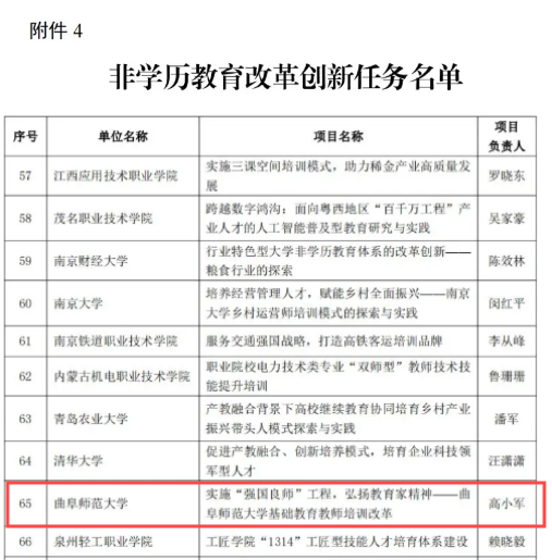 继续教育学院讯 近日,教育部发布了《2024 年学习型社会建设重点任务(高等继续教育领域)培育建设名单》,曲阜师大继续教育学院高小军副教授的《实施“强国良师”工程,弘扬教育家精神——华体会(中国)...