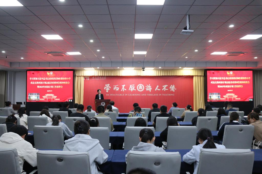 曲阜师大团委讯 5月9日,曲阜师大召开学习贯彻习近平总书记重要讲话和给谢依特小学戍边支教西部计划志愿者重要回信精神座谈会暨2025年西部计划工作部署会。党委副书记李志红出席会议并讲话。 李志红代...